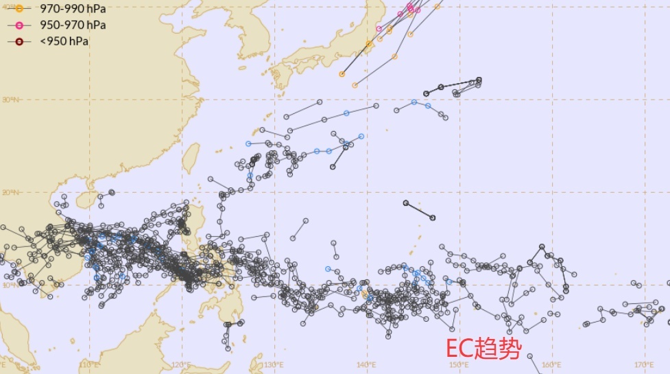 欧盟人工智能则调落了第一个台风的强度,也就是此前预报的“海鸥”,可能会到越南沿海才会命名,而后面一个才是大家伙,10日可达938百帕,不过此时的位置,在太平洋中间,所以,这一报的人工智能觉得,两个台风对我国都不会有明显影响。具体情况还需要后期的观察。
