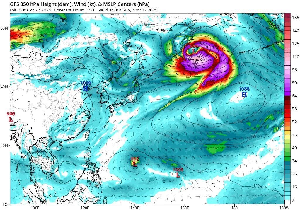 GFS给出了在11月初可能生成,并且快速增强,当下给出的巅峰气压值为941hPa的状态,这意味着有概率成为14-15级左右的台风。